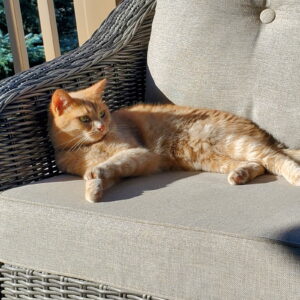 One morning as I was reading Jeremiah 31:35—He who appoints the sun to shine by day…the Lord Almighty is his name—I glanced up to see a glorious sunrise. Our orange cat was snoozing on my lap, trusting me with her presence. Deeply grateful.